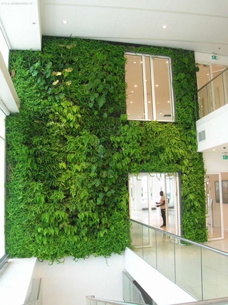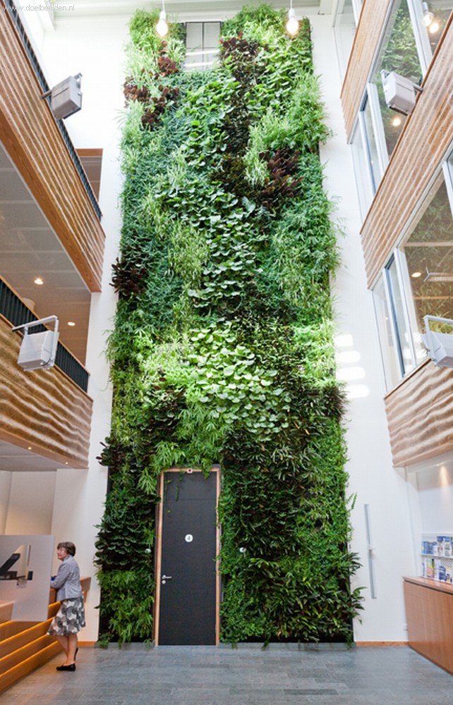 A wall of plants in the interior of Eneco Rotterdam.