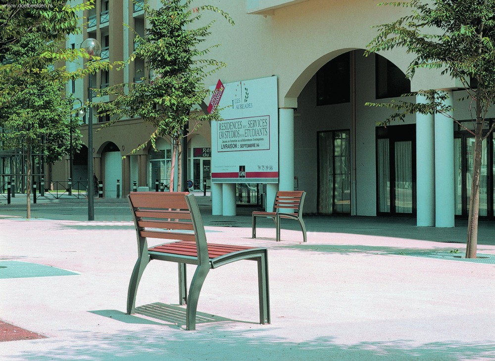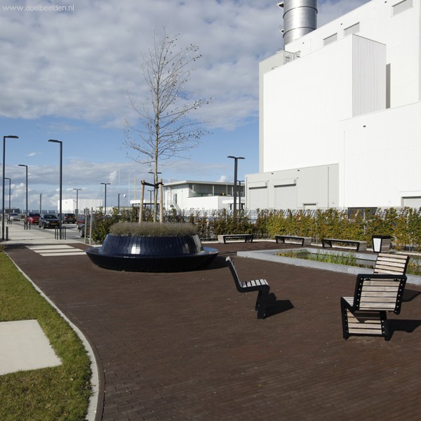 This modern and elegant furniture line was designed in commission by Falco bv, a producer and supplier of products for public areas. This serie is characterized by its slim frame made of steel and the wooden vesture which seems to come out of the ground.