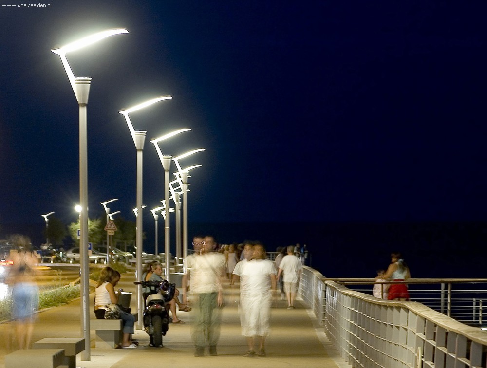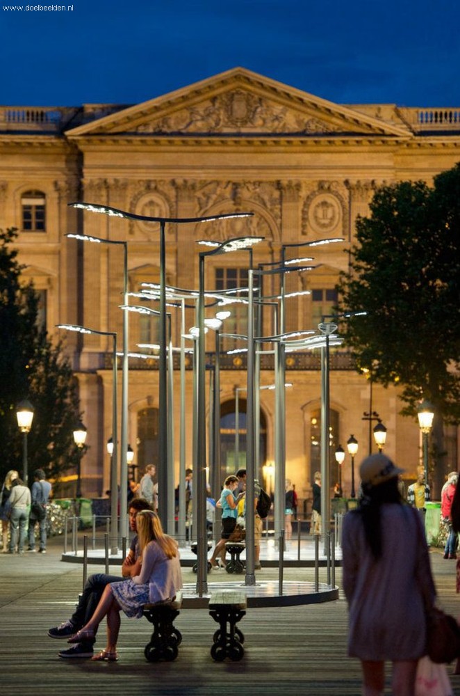 Green drinking fountain with people