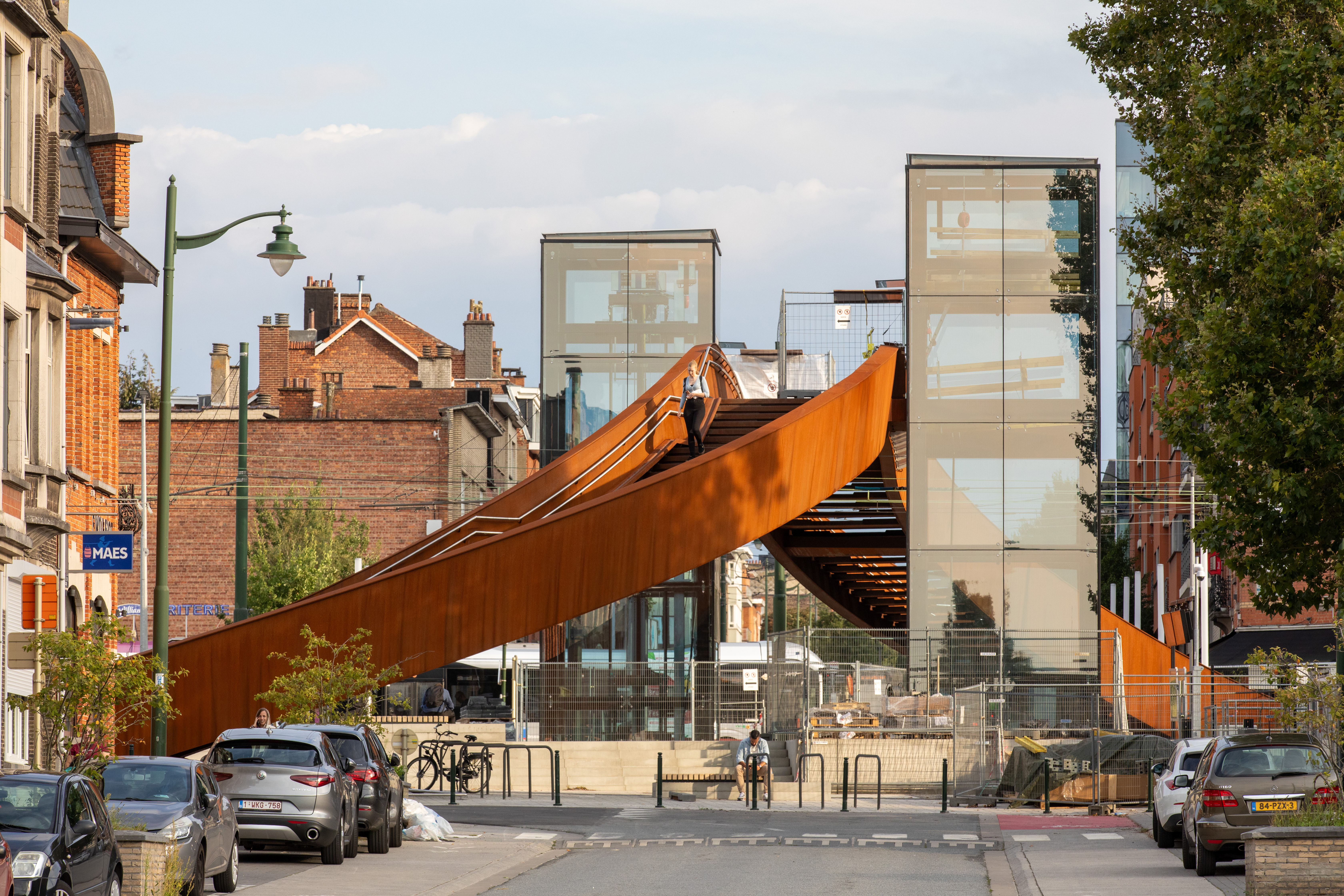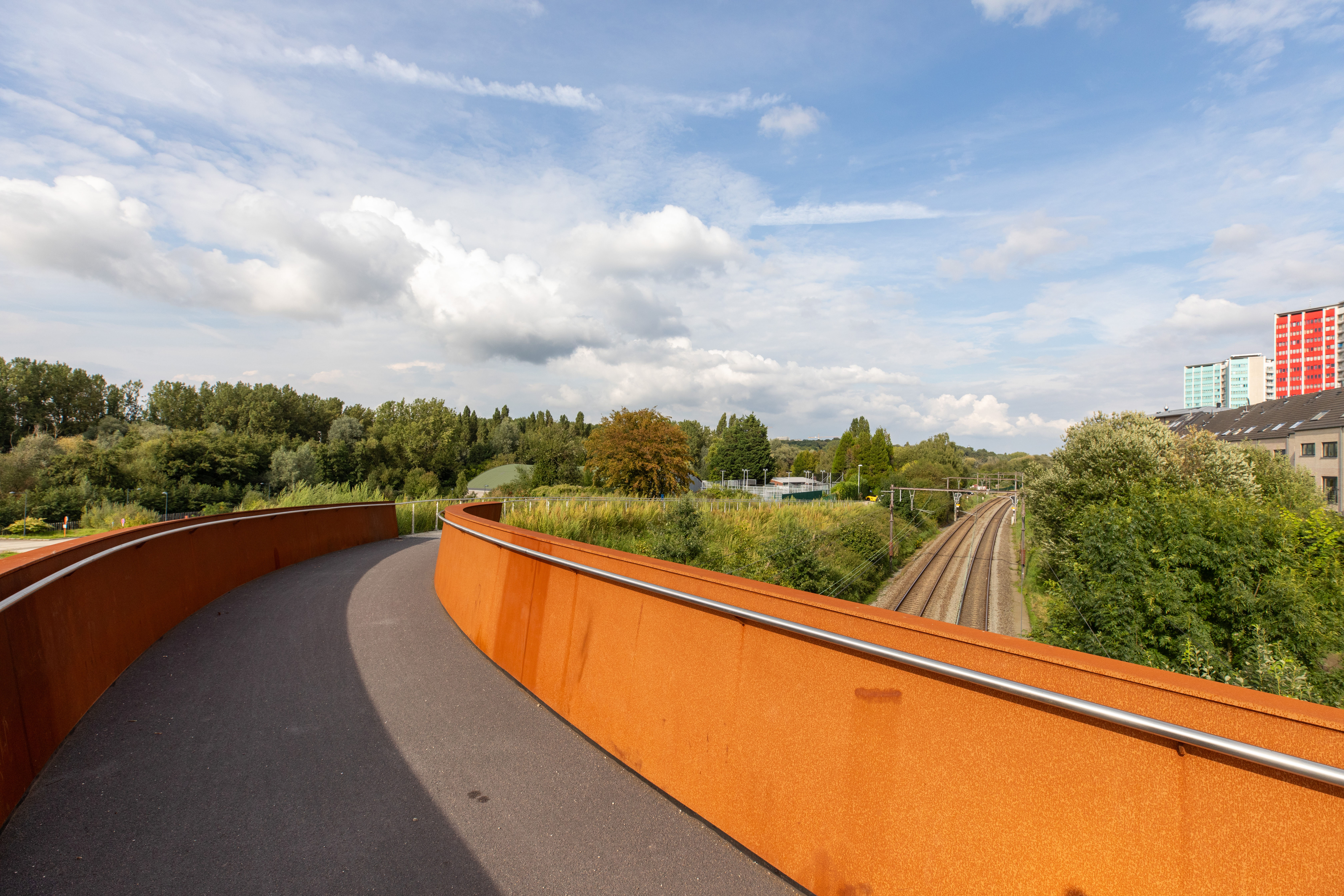 Commissioned by Infrabel and in collaboration with Artgineering, we created the winning tender design for the passerelles on the L50 railway north of Brussels in 2017. With the striking corten steel bridges, the crossing has become a lot nicer and more comfortable, both at Sint-Agatha-Berchem station and in Ganshoren, slightly further east. The physical connection with very nearby Flanders has also been strengthened and the design also responds to the future expansion of the GEN (Regional Express Network).