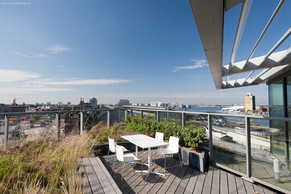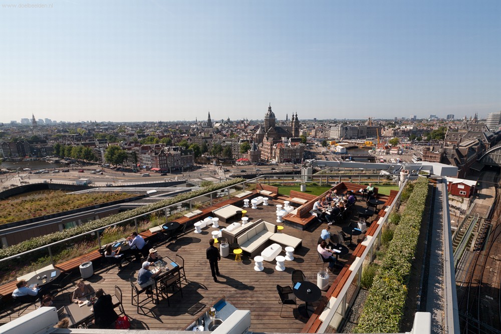Het terras van het Hilton hotel