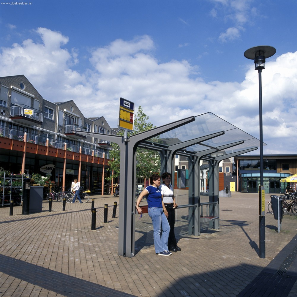 Voor de Gemeente Rijswijk ontwikkelde ipv Delft een openbaar vervoer plein. Abri's bewegwijzering en een stationsklok.
