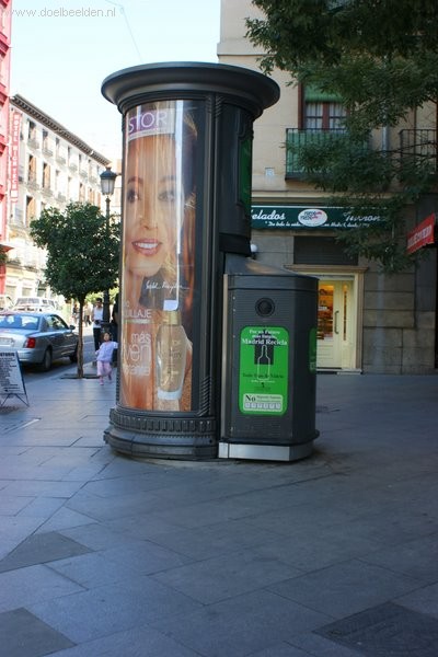 reclamezuil, toilet, glasbak