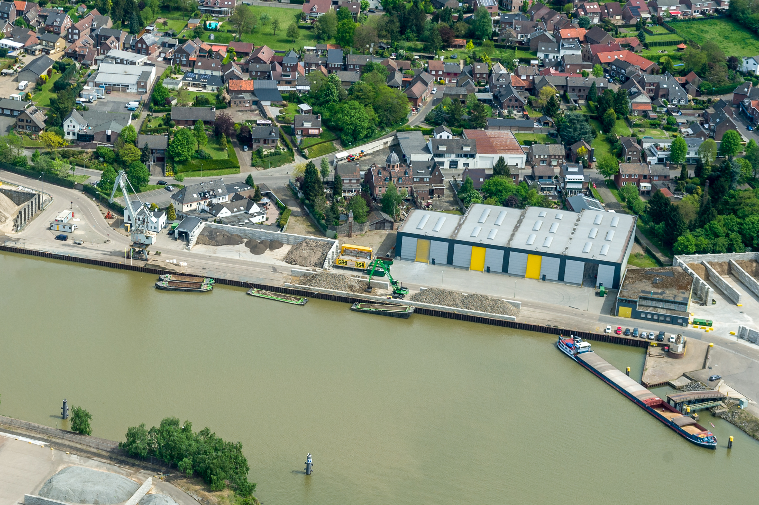Opslag en vervoer van zand en grind bij haven Stein, luchtfoto