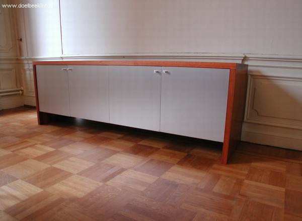 Dressoir, jatoba, aluminium deuren. Grepen Aluminium. productie: Van Diepen Houtwerk