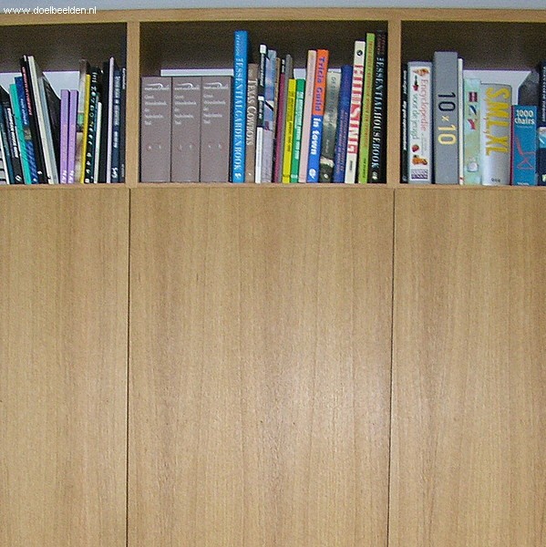 Grote boekenkast geheel op maat gemaakt er ter plaatse gemonteerd.