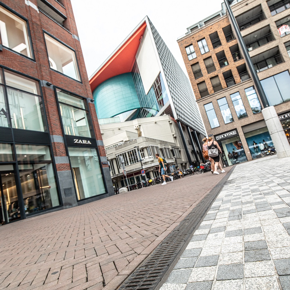 ACO Drain lijnafwatering gietijzeren rooster - Vredenburgplein Utrecht