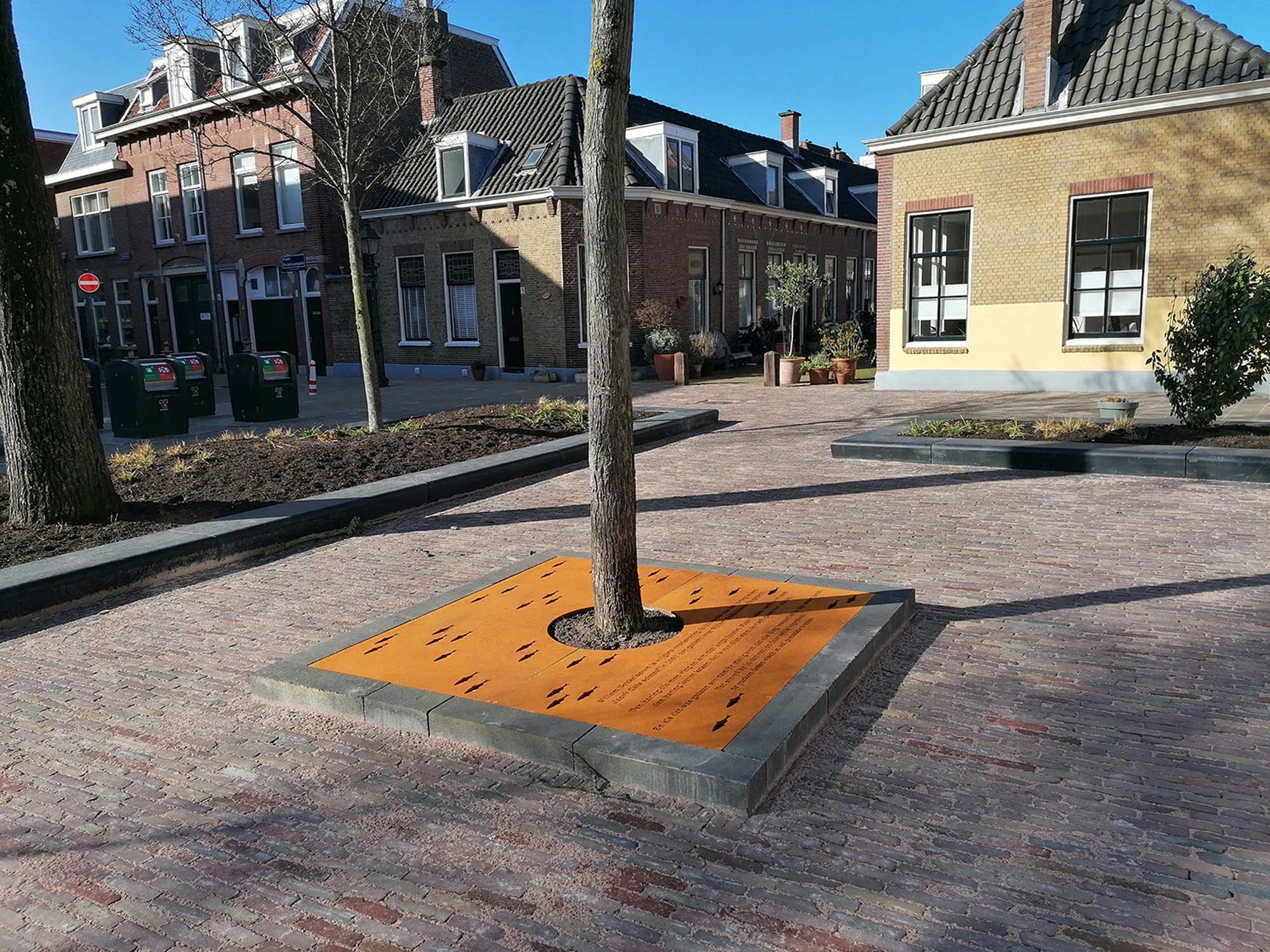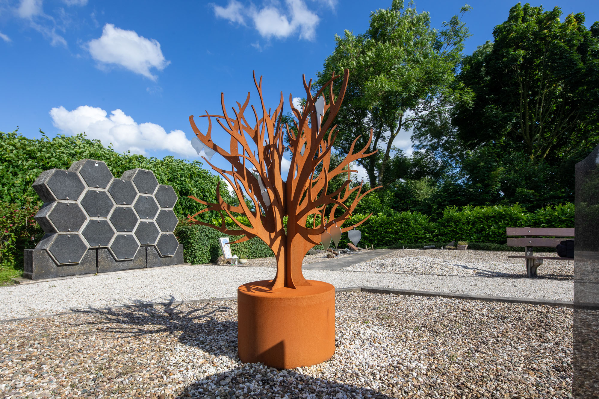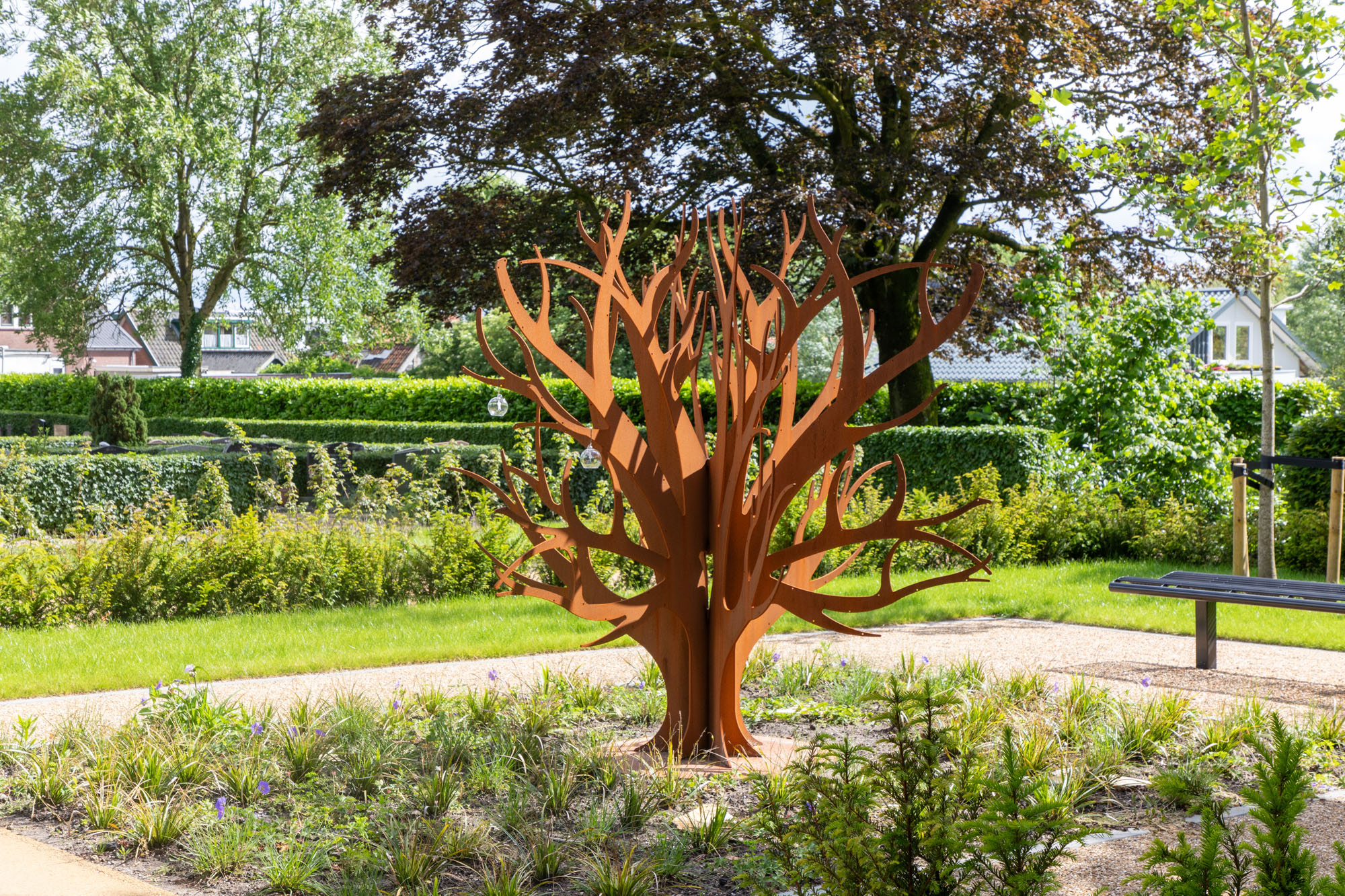 Herinnering gedenkboom cortenstalen kunstwerk bureau Stoep