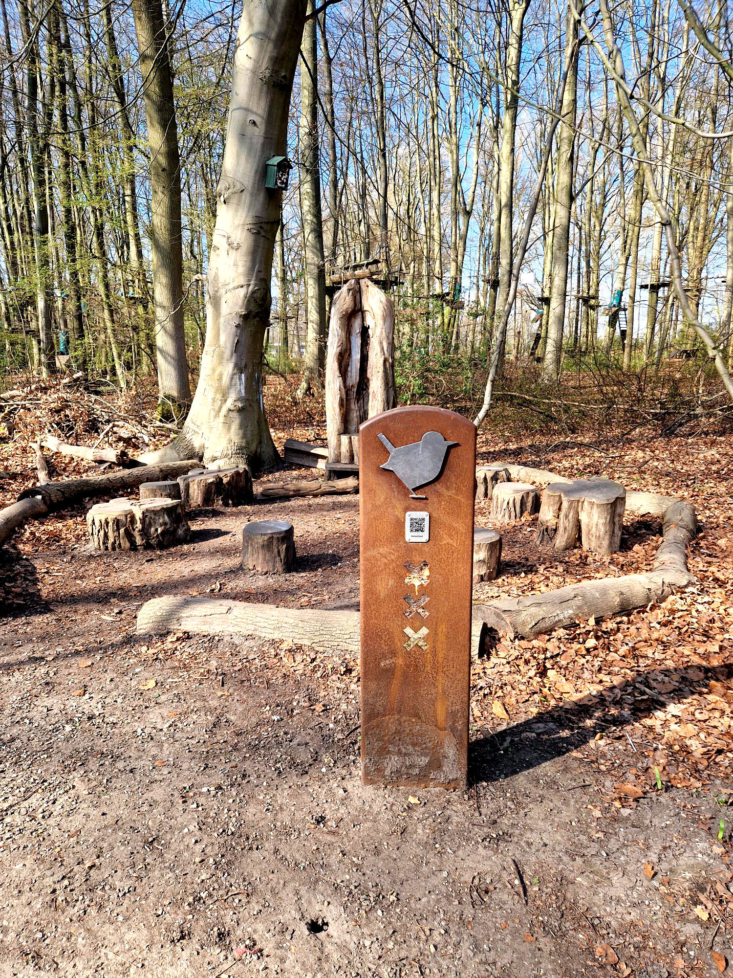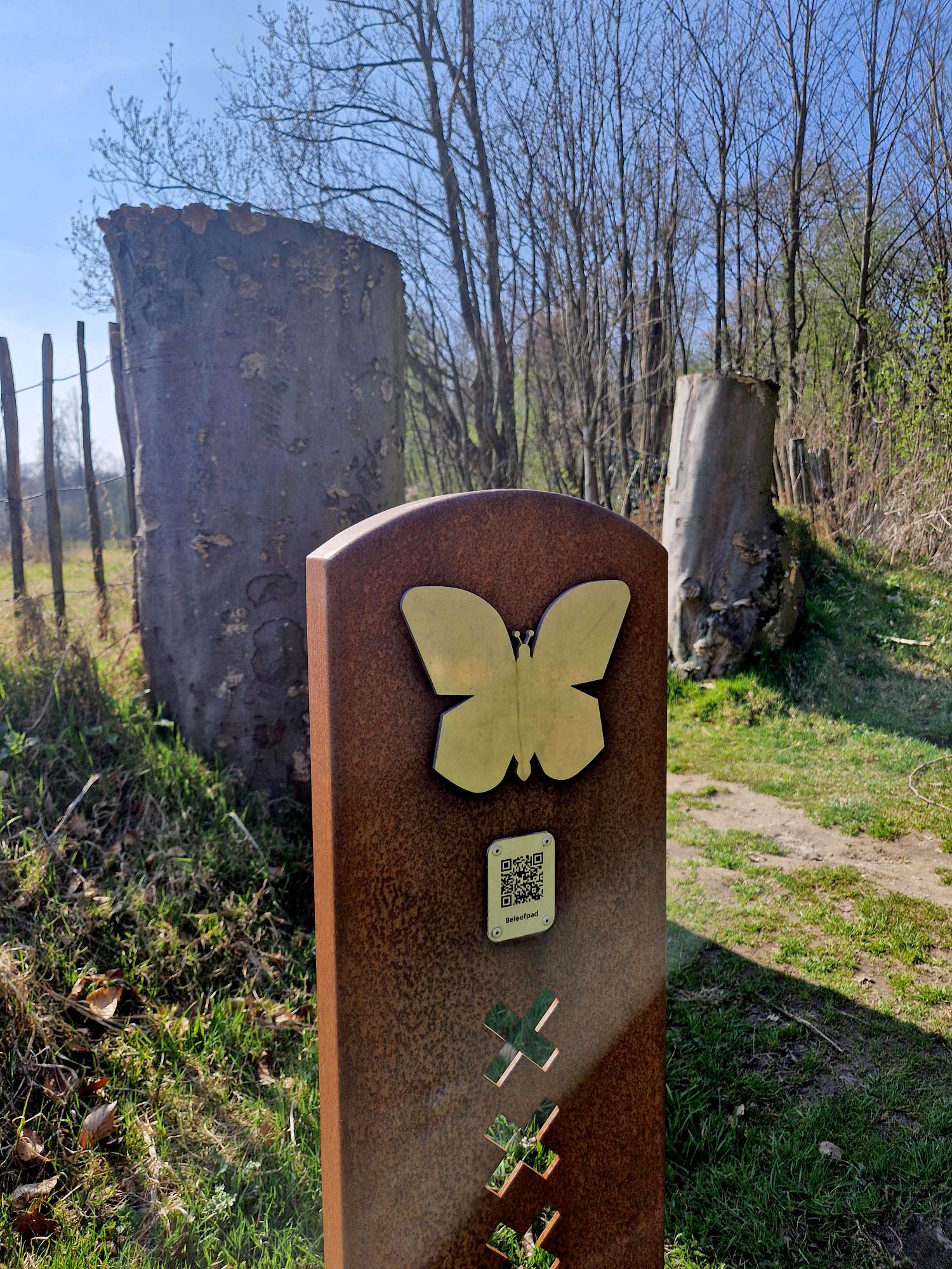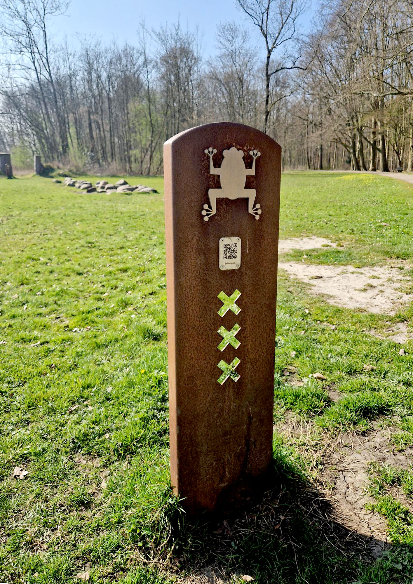 Cortenstalen bord Amsterdamse Bos blotevoetenpad bureau Stoep